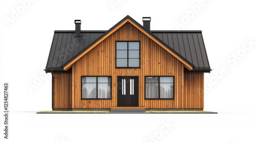 Modern Wooden House: A modern, stylish wooden house with black accents, showcasing its sleek design and cozy ambiance. This image conveys a sense of warmth, security, and contemporary living.