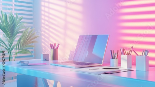 Modern Workspace Elegance: Stylish Office Supplies in Cinematic Light