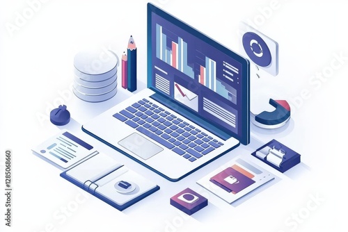Modern Workspace with Laptop, Graphs, and Office Supplies for Digital Professionals