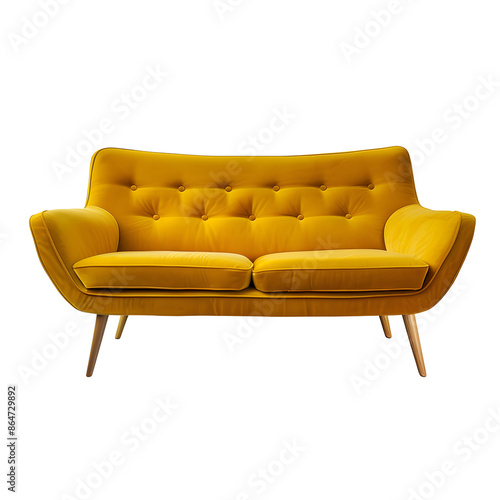 Modern yellow fabric vintage sofa isolated on white background with clipping path. Furniture.