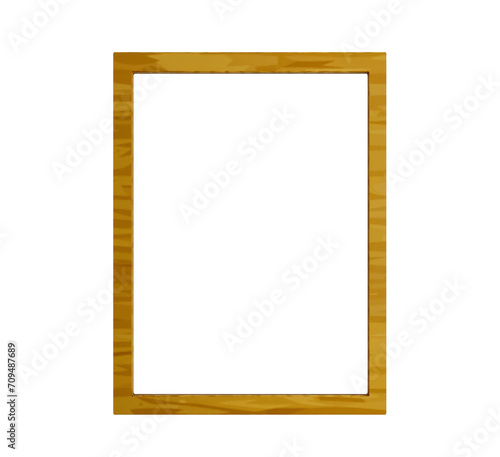 Modern yellow rustic chic brown wood photo frame isolated on transparent background Thin portrait vertical rectangle wooden mock up for poster, picture and wall art png 3d rendering image