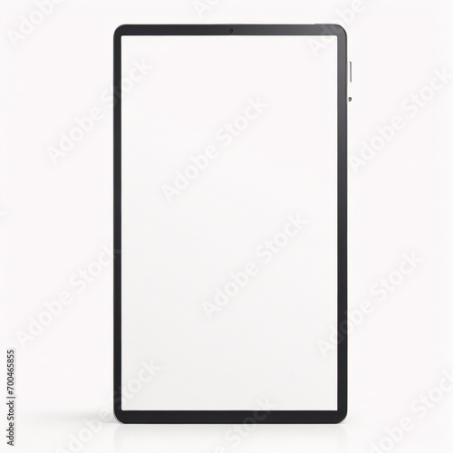 Moderner schwarzer Tablet-Computer mit leerem horizontalen Bildschirm isoliert auf weißem Hintergrund.