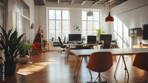 Modernes, helles Büro mit stilvollem Design und natürlicher Beleuchtung