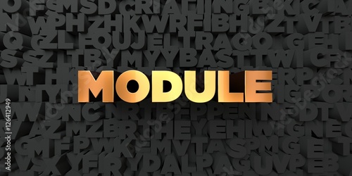 Module - Gold text on black background - 3D rendered royalty free stock picture. This image can be used for an online website banner ad or a print postcard.
