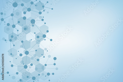 Molecular structure background and communication. Abstract background from molecule DNA. Medical, science and digital technology concept with connected lines and dots.