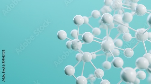 Molecular structure on a soft teal background, illustrating scientific concepts of chemistry and molecular biology.