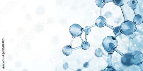 Molecular structure with transparent blue molecules on light background