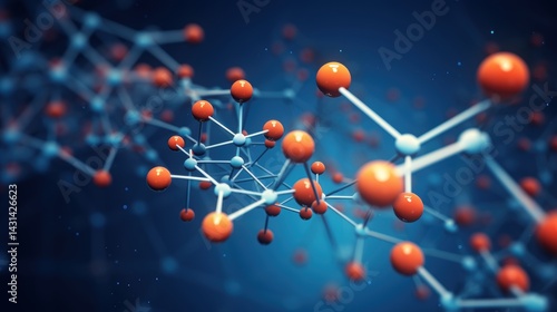 molecule or atom, Abstract structure for Science or medical background, 3d illustration, science, atom, abstract, chemistry, structure, blue, chemical, background
