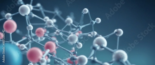 Molecules or atoms on blue background. Medical, science, biochemical, pharmaceutical and beauty concept.
