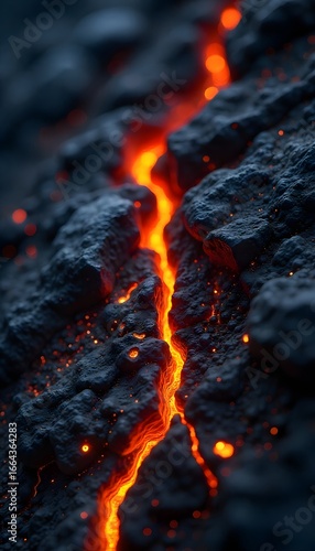 Molten Lava Flowing Between Black Rocks Creates Intense Heat