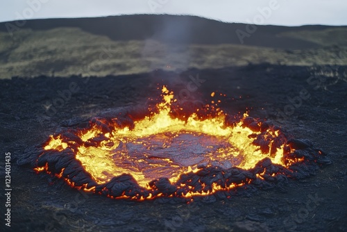 Molten Lava Pothole Glowing Ominously in Volcanic Landscape
