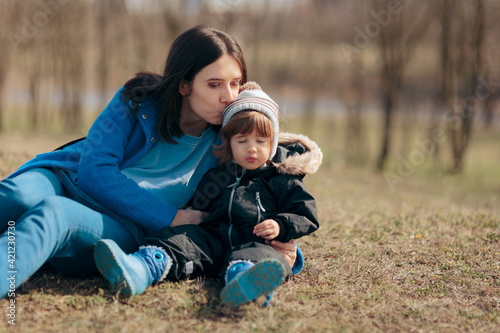 Mom Kissing Daughter Outdoors Spending Quality Time