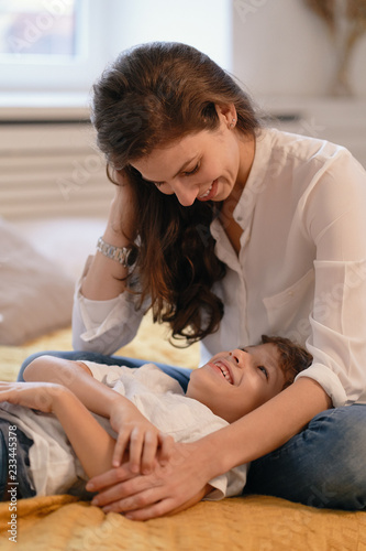 Mom looking at her son smiling