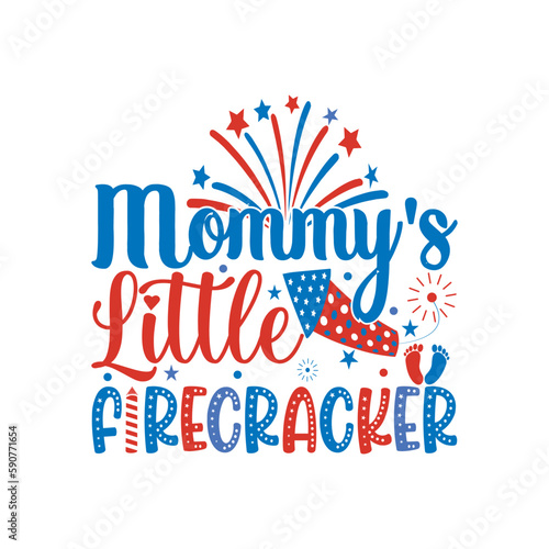 Mommy's little firecracker - Independence Day July 4 lettering design illustration eps file