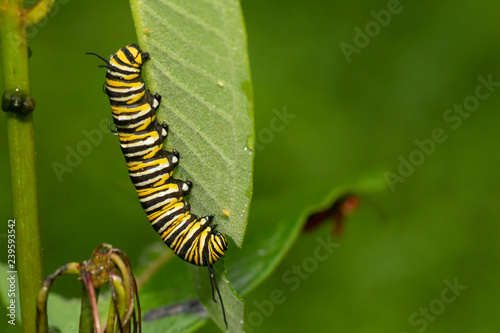 Monarch butterfly caterpillar feeeding on milkweed - Danaus plexippus