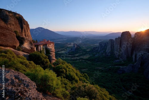 Monastery Atop Meteora Rock Formations at Sunrise, Greece Travel Destination