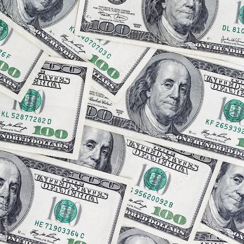 Money american hundred dollar bills.Dollar bills background.Closeup of assorted American banknotes.US currency scattered on the table.america currency dollor currency.Bonistics
