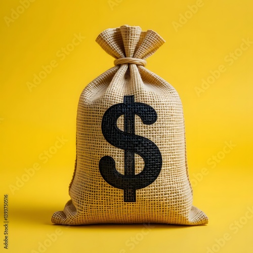 Money Bag with Dollar Sign on Yellow Background – Finance, Investment, and Wealth Concept
