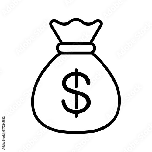 Money bag with dollar symbol in minimalist line art style