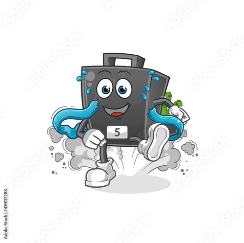 money briefcase runner character. cartoon mascot vector