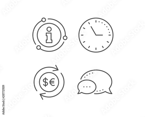 Money exchange line icon. Chat bubble, info sign elements. Banking currency sign. Euro and Dollar Cash transfer symbol. Linear money currency outline icon. Information bubble. Vector