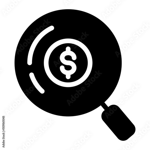Money symbol magnifying glass icon, vector illustration for finance and business