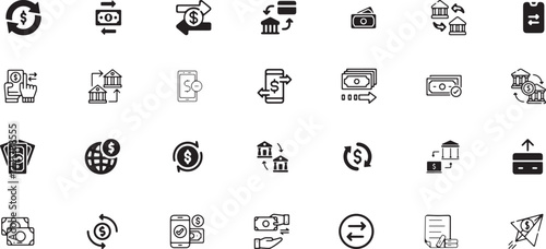 Money transfer icon set, banking, payment, money, transfer, finance, dollar, financial, bank, cash, transaction, currency, online, investment, business, technology, digital, economy, internet, exchang