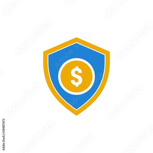 Money with a shield. Guarantee financial protect icon concept isolated on white background. Vector illustration