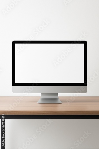 Monitor Mockup on Sleek Desk Isolated on White