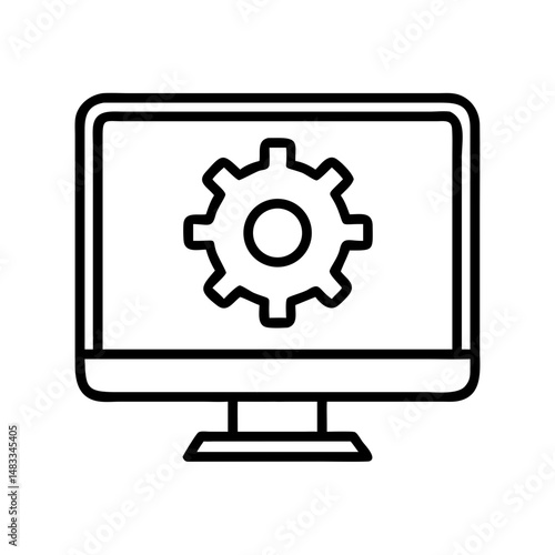 Monitor with Gear Icon Representing System Settings and Technical Configuration
