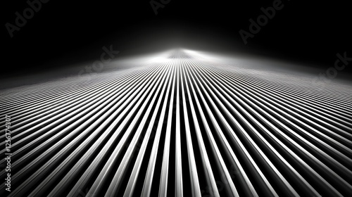 Monochromatic lines converging to distant light, abstract perspective, night setting, for design backgrounds.