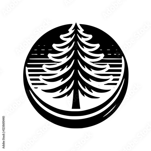 Monochromatic Pine Tree in a Circle: Minimalist Nature Graphic Design