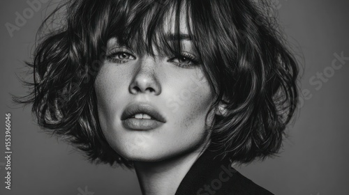 Monochromatic Portrait of a Woman with Short, Curly Hair