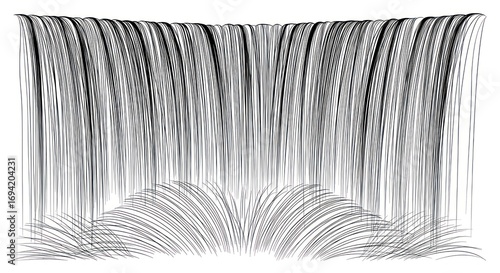 Monochrome cascade of flowing lines in a contemporary graphic style drawing illustration