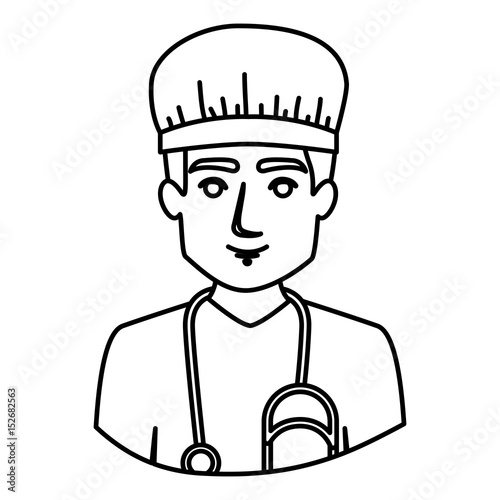 monochrome contour half body of male nurse vector illustration
