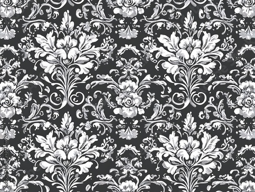 Monochrome Damask Pattern for Decorative Wallpaper and Textile Design