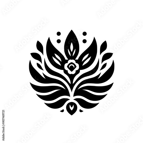 Monochrome Floral Emblem with Geometric Shape & White Background