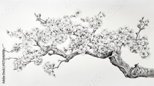 Monochrome flowering branch drawing