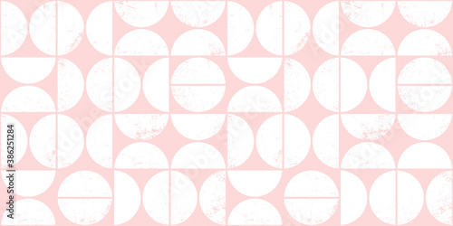 Monochrome geometric seamless pattern in Scandinavian style. Modern abstract grunge background with semicircles.
