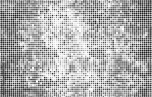 Monochrome halftone background. Abstract texture of black dots on white back.