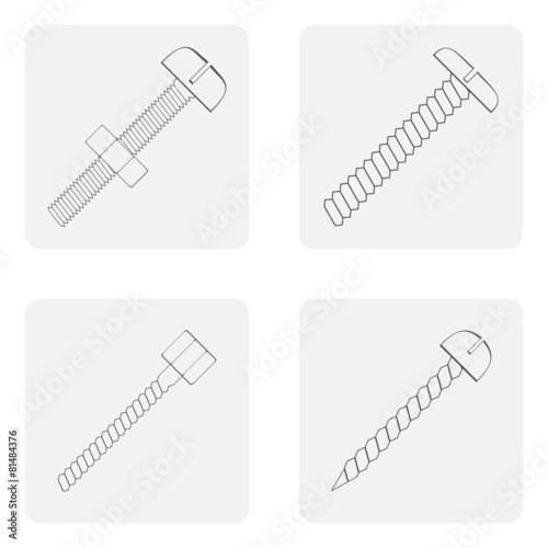 monochrome icon set with nuts and bolts