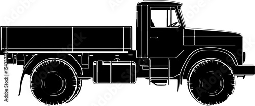 monochrome illustration of a dump truck