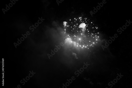 Monochrome image of exploding fireworks