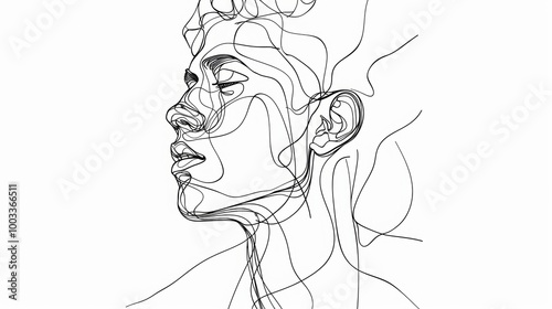 Monochrome Line Drawing of Abstract Face Conveying Thoughtful Emotion and Concept