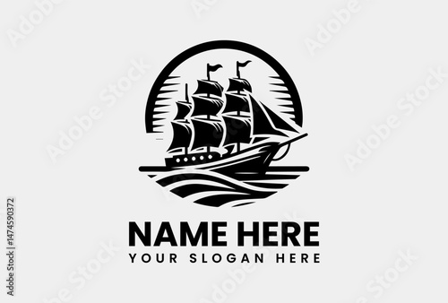 Monochrome Sailing Ship Illustration. Minimalist Maritime Vector Logo Art