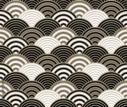Monochrome seigaiha luxurious japanese wave pattern.