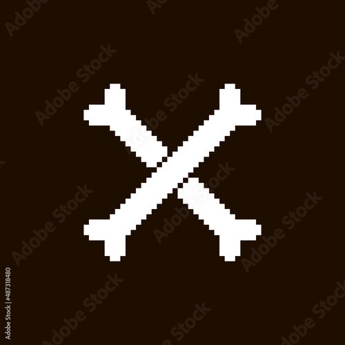 monochrome simple flat pixel art illustration of white two crossbones on black background