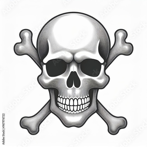 Monochrome Skull and Crossbones Illustration. Bold VintagebInspired Line Art Vector Icon Symbolizing Danger, Death, or Piracy in Classic Tattoo and Pirate Aesthetic, Halloween Night White Background