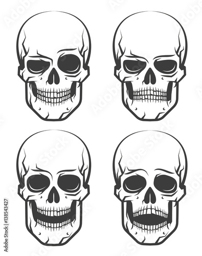 Monochrome skull tattoo set of emotions. Vector illustration on white background.