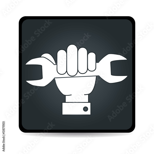 monochrome square emblem of hand with wrench vector illustration